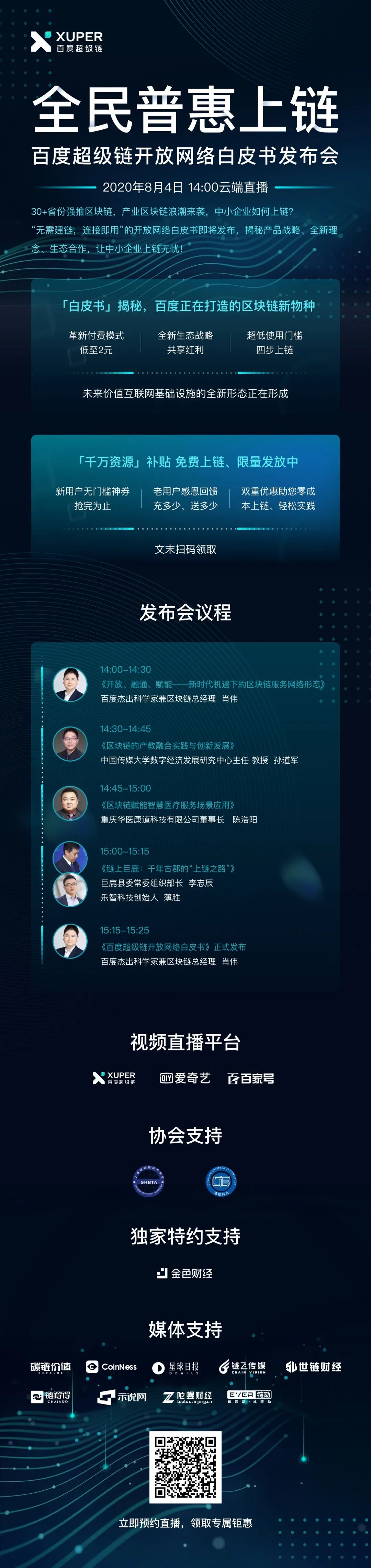 为了能够让区块链技术变得像“水、电、煤”一样“接地气”,百度构建了一种新型的区块链网络形态——超级链开放网络(XuperOS),这是基于百度完全自主研发的开源技术搭建的区块链基础服务网络,由分布在全球的超级联盟节点组成,符合中国标准,为用户提供区块链应用快速部署和运行的环境,以及计算和存储等资源的弹性付费能力,直接降低用户部署和运维成本,让信任链接更加便捷。8月4日,百度超级链将以线上直播的形式召开百度超级链开放网络白皮书发布,从整个区块链网络发展趋势、百度区块链的核心理念以及生态合作等方面,更加详细、系统化的梳理未来区块链发展趋势。除了干货满满的主题演讲和白皮书的发布之外,链圈区块链的团队带你走进百度超级链在发布会;期间还为新老用户准备了超级丰厚的大礼,补贴资源大放送,新用户无门槛神券、老用户感恩回馈,双重优惠实现零成本上链。链圈区块链科技专注于区块链技术落地应用系统的开发;经过多年的技术探索,公司成熟的 DAPP系统涵盖:区块链商城系统,区块链聊天系统,区块链游戏,积分交易系统的落地应用,以及数字钱包,股权智能合约,供应链系统设计,资产实物凭证的开发。